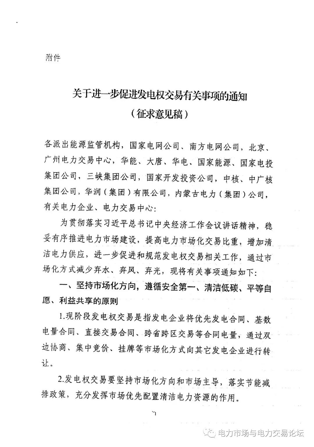 關(guān)于進(jìn)一步促進(jìn)發(fā)電權(quán)交易有關(guān)事項(xiàng)的通知(征求意見稿)發(fā)布:鼓勵(lì)清潔能源發(fā)電機(jī)組參與交易