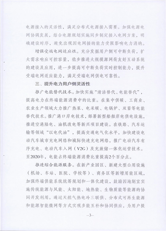 提升電力用戶側(cè)靈活性,推廣電能替代技術(shù),至2020年,電能占終端能源消費(fèi)比重提高2個(gè)百分點(diǎn)。推進(jìn)綜合能源服務(wù),在新產(chǎn)業(yè)園區(qū)、新建大型公用設(shè)施、商業(yè)區(qū)等新增用能區(qū)域,通過分布式可再生能源和能源智能微網(wǎng)等方式實(shí)現(xiàn)多能互補(bǔ)協(xié)同供應(yīng),開展分布式能源市場(chǎng)化交易。