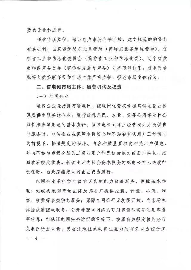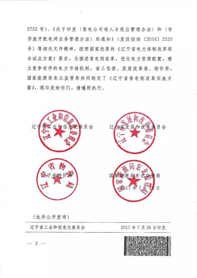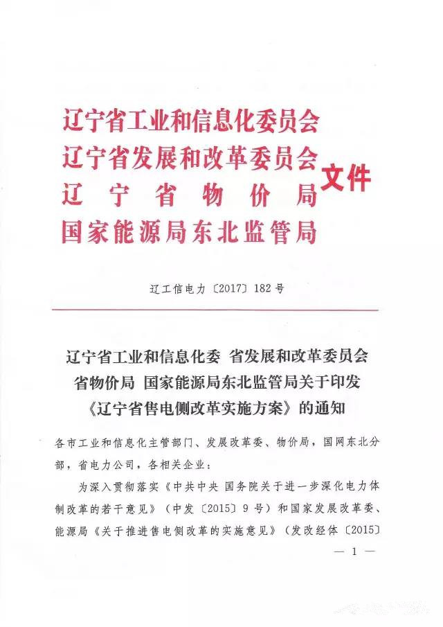 遼寧省工業(yè)和信息化委員會(huì)、遼寧省發(fā)展改革委、遼寧省物價(jià)局、國家能源局東北監(jiān)管局于7月26日聯(lián)合下發(fā)了《遼寧省售電側(cè)改革實(shí)施方案》,全文如下: