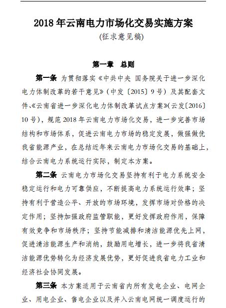 云南開展征求《2018年云南電力市場(chǎng)化交易實(shí)施方案》意見工作