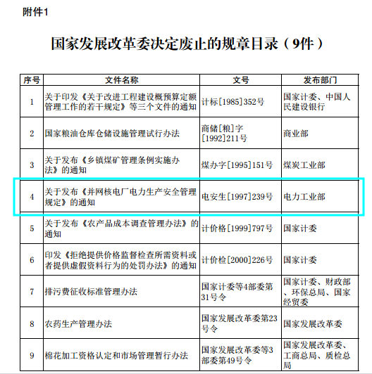 國家發(fā)改委關(guān)于廢止有關(guān)規(guī)章和規(guī)范性文件的決定發(fā)布:涉及電力行業(yè)13個(gè)