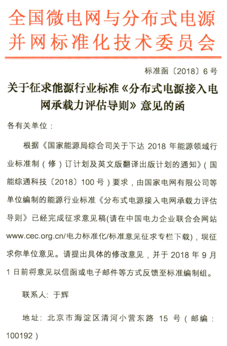 行業(yè)標準|《分布式電源接入電網(wǎng)承載力評估導則》征求意見