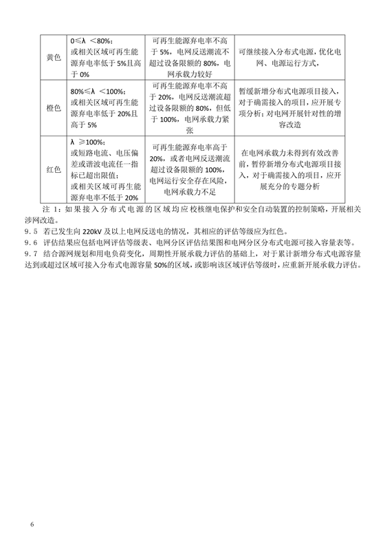 7、本導則的4.10中規(guī)定的評估結(jié)果是根據(jù)熱穩(wěn)定評估結(jié)果來進行承載力評估分級劃分,其他指標作為輔指標??紤]到由于在法定節(jié)假日、產(chǎn)業(yè)政策調(diào)整等(電力供需矛盾突出的)特殊時期,全網(wǎng)的電力電量平衡不是局部問題,若電壓偏差和諧波不超標,棄光、棄風、棄水量可不參與熱穩(wěn)定評估。
