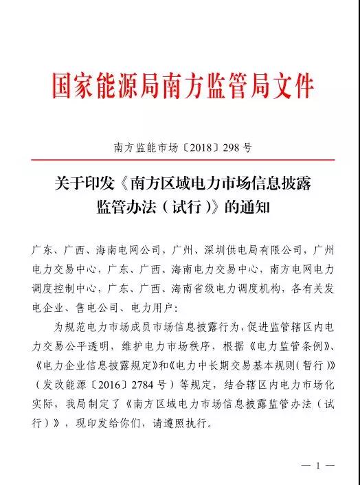 南方區(qū)域電力市場信息披露監(jiān)管辦法(試行)
