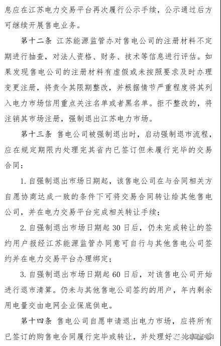 注冊生效后一年內(nèi)未在江蘇電力市場實際成交售電業(yè)務的售電公司,在重新開展售電業(yè)務前,其注冊信息應在江蘇電力交易平臺再次履行公示手續(xù),公示通過后方可繼續(xù)開展售電業(yè)務。
