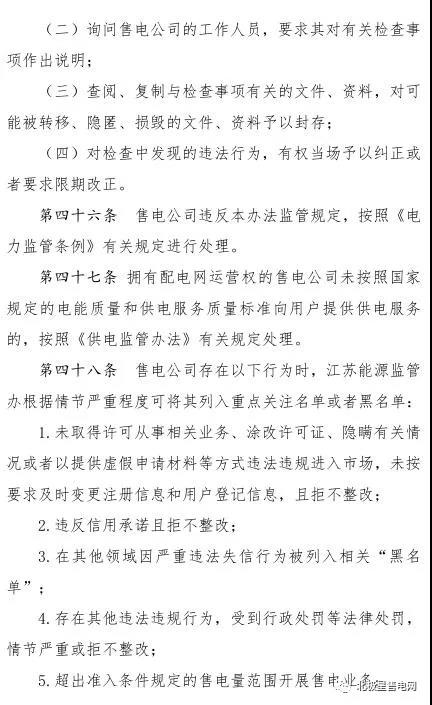 售電公司存在以下行為時,江蘇能源監(jiān)管辦根據(jù)情節(jié)嚴重程度可將其列入重點關注名單或者黑名單: