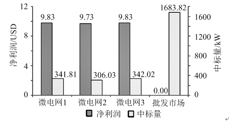 圖8 場景2微電網(wǎng)運營商凈利潤及中標量