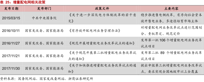 之后,各部委又出臺(tái)多個(gè)文件,推動(dòng)增量配電網(wǎng)相關(guān)工作開(kāi)展,如表 25 所示。