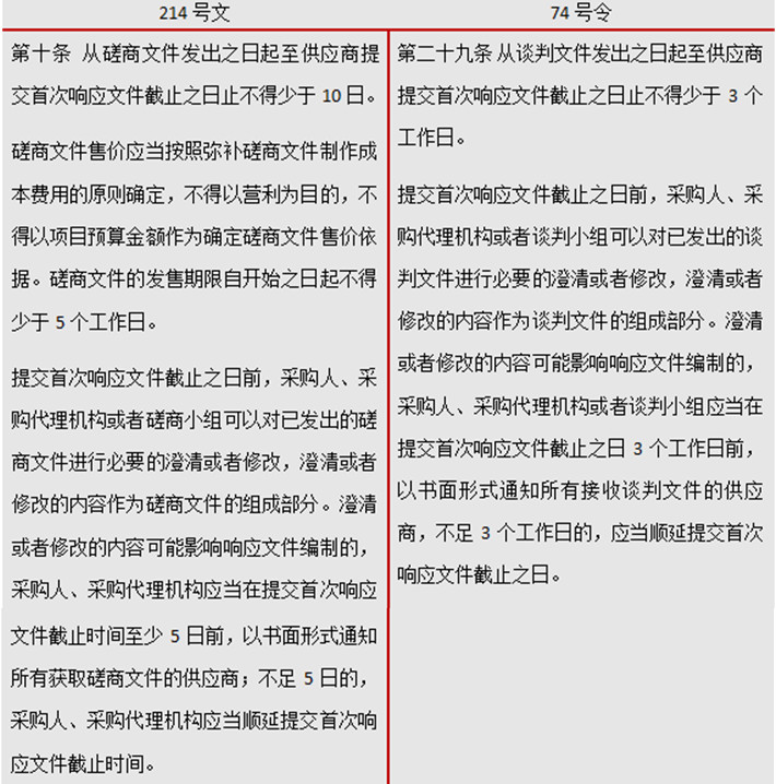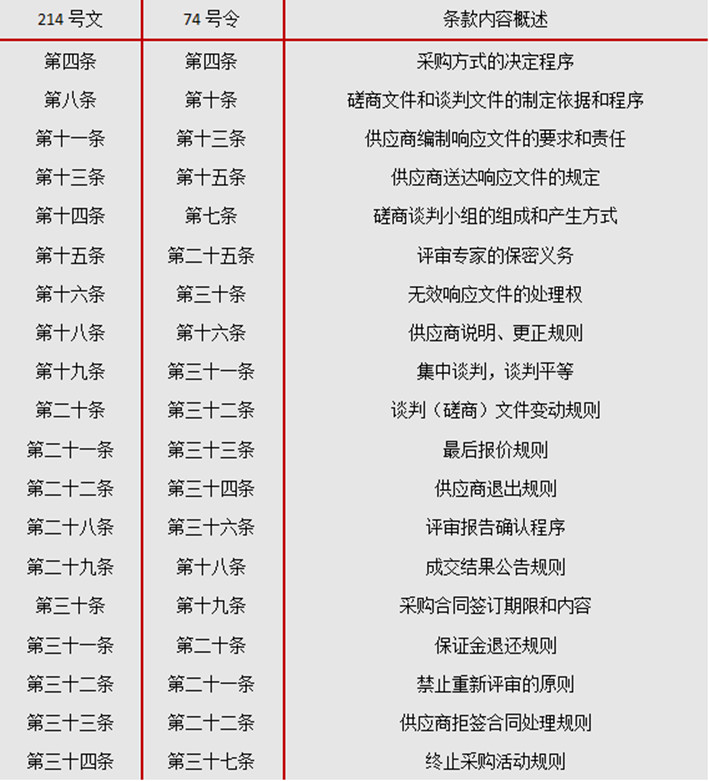 從具體的規(guī)定來看,214號文中的大部分規(guī)定與74號令中對于競爭性談判程序的規(guī)定是相同的。