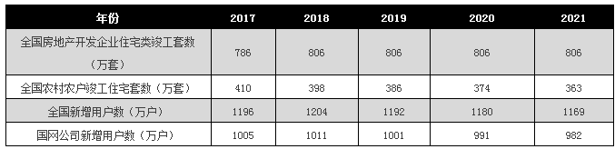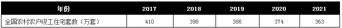 表4 2017~2021年期間全國(guó)農(nóng)村農(nóng)戶竣工住宅套數(shù)