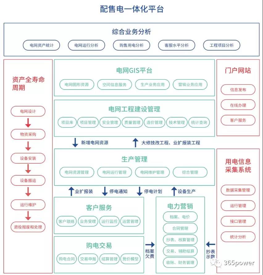 如果你身在其中,一定很清楚一個(gè)配售電公司的業(yè)務(wù)體系有多龐大,從投資、建設(shè)到運(yùn)營,從基層配網(wǎng)建設(shè)規(guī)劃、運(yùn)行運(yùn)維、配網(wǎng)調(diào)度到購售電營銷,每一環(huán)節(jié)都是一套系統(tǒng)工程,業(yè)務(wù)模塊繁多,專業(yè)性強(qiáng)。比如說: