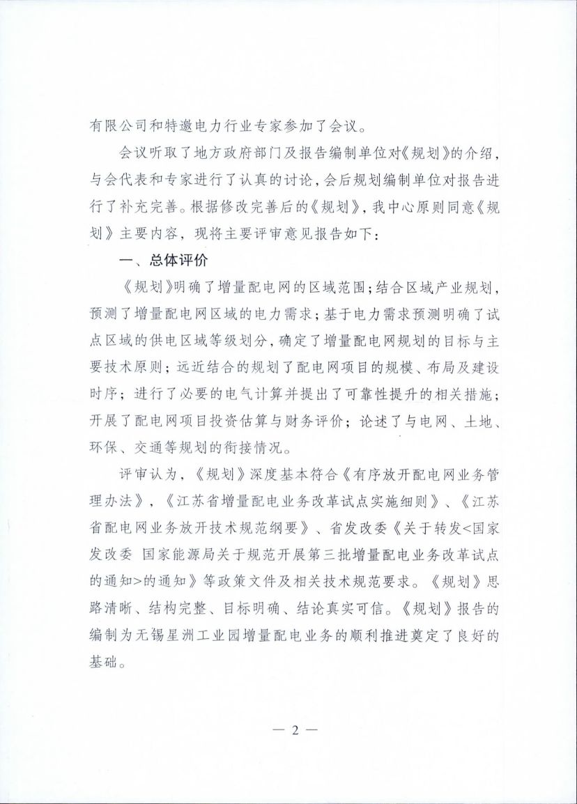 江蘇無錫星洲工業(yè)園增量配電業(yè)務(wù)試點(diǎn)區(qū)域配電網(wǎng)專項(xiàng)規(guī)劃評審意見報(bào)告