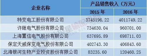 圖表:2015-16年中國電力變壓器制造行業(yè)企業(yè)產(chǎn)品銷售收入前五位企業(yè)