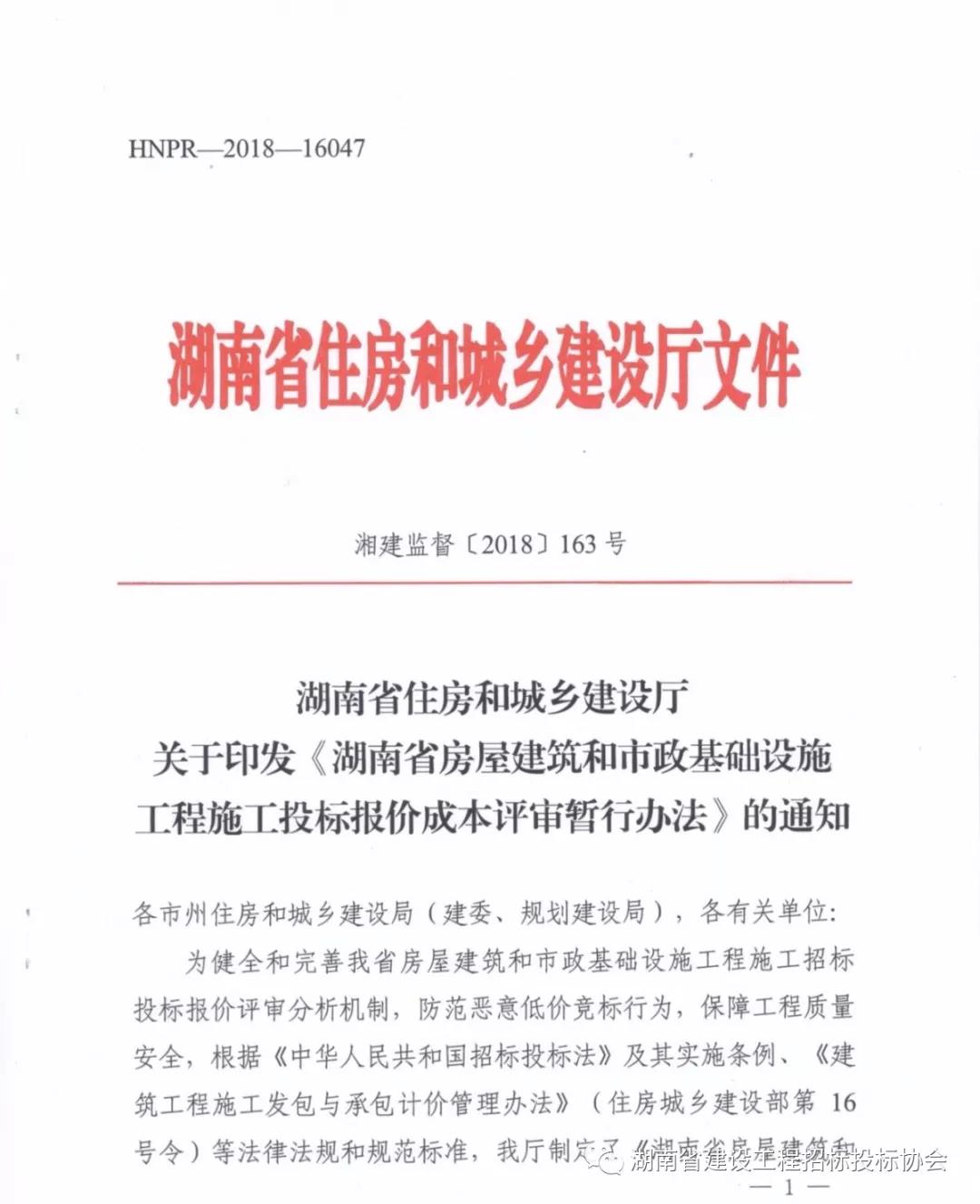 湘建監(jiān)督〔2018〕163號湖南省住房和城鄉(xiāng)建設(shè)廳關(guān)于印發(fā)《湖南省房屋建筑和市政基礎(chǔ)設(shè)施工程施工投標(biāo)報(bào)價(jià)成本評審暫行辦法》的通知各市州住...