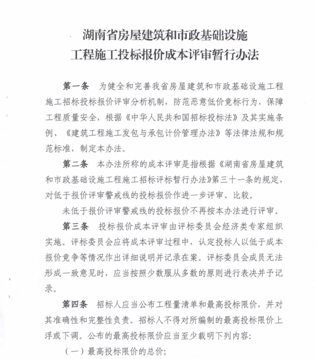 關(guān)于印發(fā)《湖南省房屋建筑和市政基礎(chǔ)設(shè)施工程施工投標(biāo)報(bào)價(jià)成本評審暫行辦法》的通知