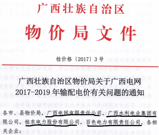 首先,要明確這個只是針對南網(wǎng)廣西電網(wǎng)供電區(qū)域的輸配電價!