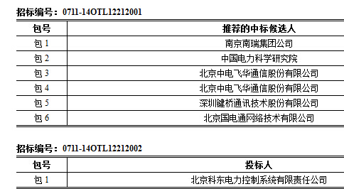 國(guó)網(wǎng)信息化2014年第四批(調(diào)度集成、調(diào)度硬件)中標(biāo)名單