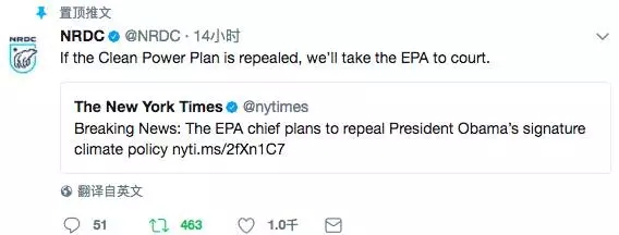 美國自然資源保護(hù)委員會稱,《清潔電力計(jì)劃》是美國遏制氣候變化危害影響采取的有史以來最重要的一步,如果該計(jì)劃被廢除,他們會將美國環(huán)境保護(hù)局告上法庭。