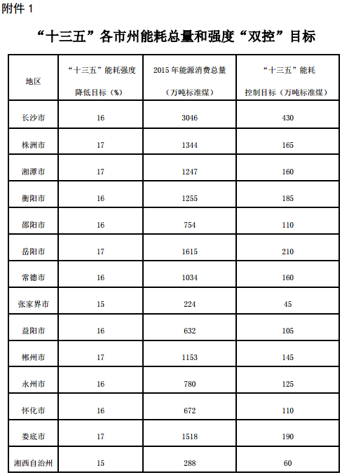 湖南省人民政府關(guān)于印發(fā)《湖南省"十三五"節(jié)能減排綜合工作方案》的通知