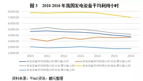 發(fā)電設(shè)備運行方面,受發(fā)電設(shè)備容量不斷增加,下游用電需求增速緩慢影響,近年發(fā)電平均利用小時數(shù)逐漸下降。2016年全國發(fā)電設(shè)備平均利用小時下降至3,785小時,較上年下降203小時,創(chuàng)近年以來新低。分電源類型來看,火電及核電平均利用小時數(shù)下降較多,水電和風(fēng)電則相對平穩(wěn)。在優(yōu)先保證清潔能源并網(wǎng)發(fā)電政策下,火電、核電平均運行時間受到一定擠壓,火電企業(yè)運營壓力加大。