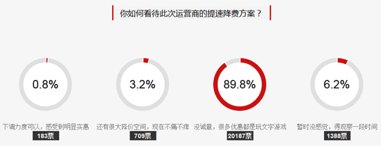 由于國內的特殊現狀,三大運營商一直牢牢把控著國內的移動通訊市場,套餐資費偏貴、網絡速度提不上去,這已經讓很多用戶積怨多年。如今好不容易,國家高層開始敦促降費提速,大家以為就此看到了希望,可最后落實下來卻是不痛不癢,資費實際上并沒有明顯調整,這也難怪調查中有近9成的用戶表示運營商沒誠意,只是在玩文字游戲。比如移動此次方案中提出的“訂1GB以上流量套餐,贈1GB夜間流量”的活動就讓人很是無語,大半夜誰沒事不睡覺刷流量,就算不睡覺在家中或者公司都可以連接WiFi,根本不需要移動流量,推出這樣的促銷活動意義何在。