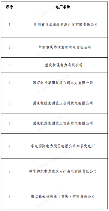 重慶市統(tǒng)調(diào)燃煤及燃?xì)獍l(fā)電企業(yè)目錄