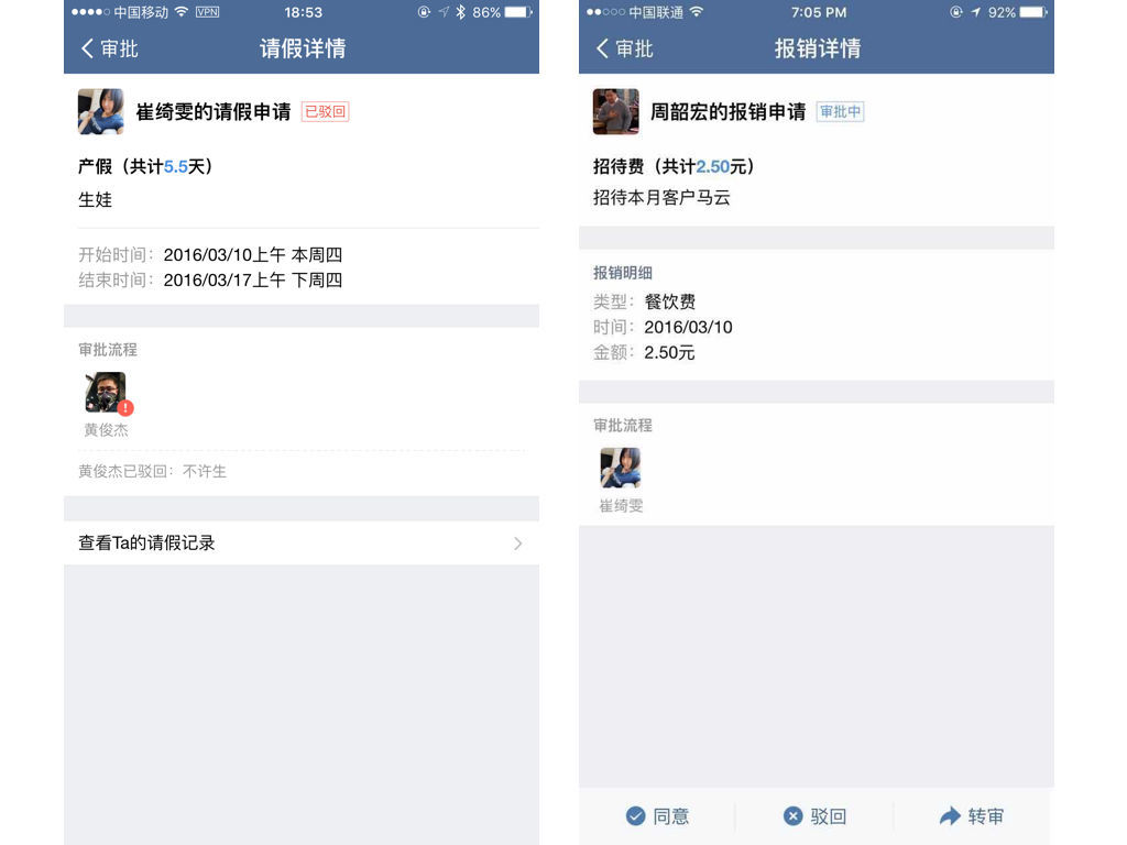 還有符合中國公司的考勤、報(bào)銷和打卡功能: