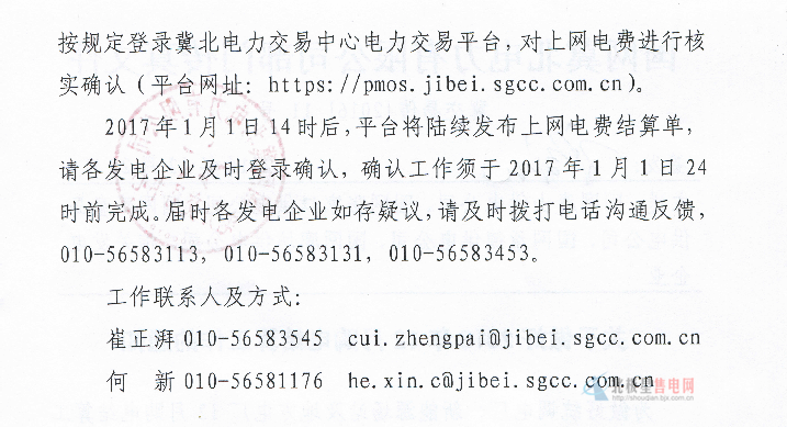 國網(wǎng)冀北電力做好2016年12月購電結(jié)算工作的通知