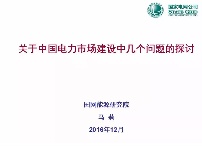 國網(wǎng)能源研究院馬莉博士:關(guān)于中國電力市場建設(shè)的問題探討