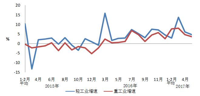 圖2: 2015年以來分月輕、重工業(yè)用電量增速情況