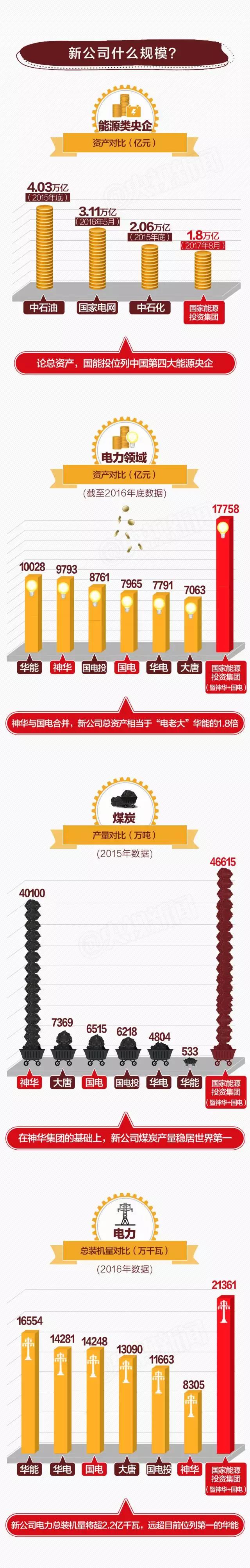 國電與神華實施合并重組,定名為國家能源投資集團有限責任公司,在能源央企中,僅次于中石油、國家電網(wǎng)和中石化,位列中國第四大能源央企。