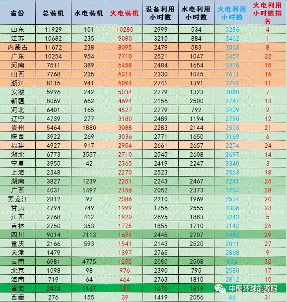 數(shù)據(jù)丨2017年1-8月分省火電裝機(jī)及利用小時(shí)數(shù)排名及比較
