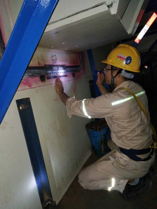 標志著6號機組鋼襯里筒體、穹頂?shù)纳渚€檢測工作