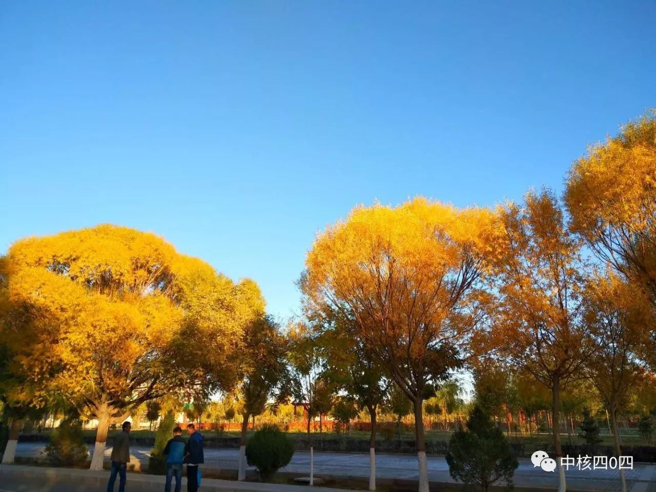 十月份的核城不再是單調(diào)的綠色,逐漸匯入了金黃、丹紅的色彩,在藍(lán)天白云的映襯下,仿佛是畫家筆下一幅絢爛的油畫。秋風(fēng)吹過,這片凈土上,每一寸都散發(fā)著濃濃的秋意。道路兩旁,樹葉已泛黃,飄落的秋葉向我們?cè)V