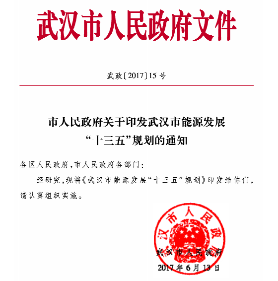 近日武漢市人民政府印發(fā)了《武漢市能源發(fā)展“十三五”規(guī)劃》。規(guī)劃明確: