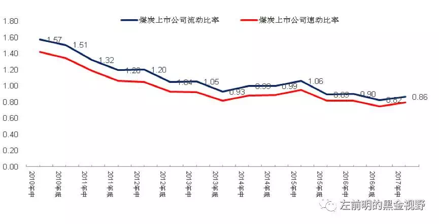 2017年相比去年煤炭上市公司的負(fù)債率僅是微降,短期償債能力也仍處在歷史低位。然而,大多數(shù)煤炭集團(tuán)公司的負(fù)債率更高,甚至受去產(chǎn)能的影響有進(jìn)一步上升的風(fēng)險(xiǎn)。