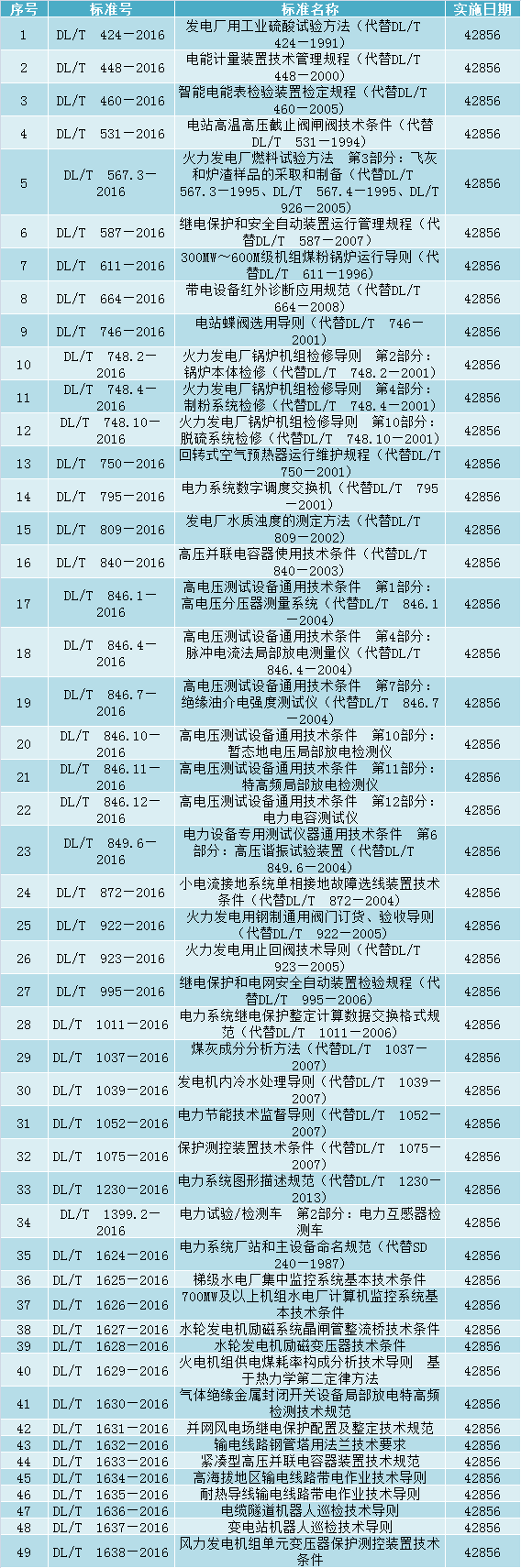 265項(xiàng)!2017年實(shí)施的電力相關(guān)行業(yè)標(biāo)準(zhǔn)(DL、NB)