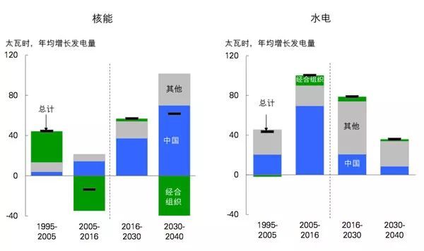 ◆由于歐盟和美國的核電站到期且不再進行更換,總體核電增長受阻。歐盟年均下降11太瓦時,美國年均下降10太瓦時。