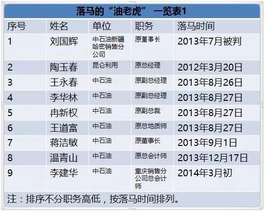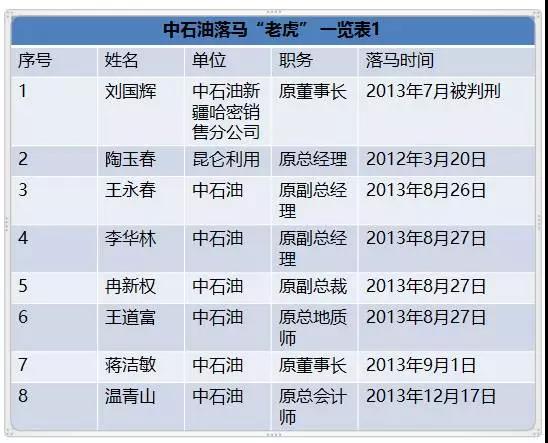 據(jù)不完全統(tǒng)計,2012年迄今,石油系統(tǒng)共有21名“老虎”被查,單中石油內(nèi)就有15名,電力系統(tǒng)共有12名“老虎”被查,煤炭領域有21名“老虎”被查,燃氣領域有2名“老虎”被查,能源系統(tǒng)內(nèi)有12名老虎被查。