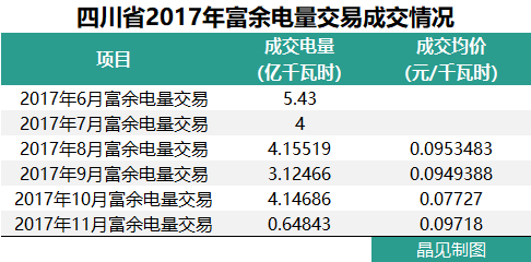 另外,晶見還整理了四川省2017年6~11月份的富余電量交易情況。發(fā)現(xiàn)2017年8~11月份的加權(quán)平均成交價為0.089132元/千瓦時,如果把這個價格放到2018年的規(guī)則中,兩類大工業(yè)用戶的用電價格分別為0.244532元/千瓦時和0.224432元/千瓦時。這兩個用電價格在上面的兩個價格范圍內(nèi)都是明顯偏向于便宜的。