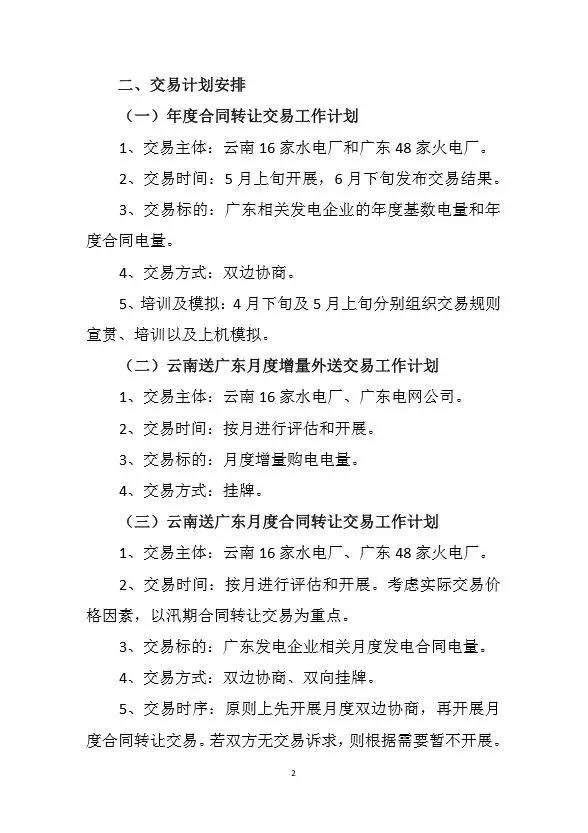 在足額落實西電東送協(xié)議計劃基礎上,利用西電東送通道富余能力組織云南、廣東相關企業(yè)進行年度發(fā)電合同轉讓交易。