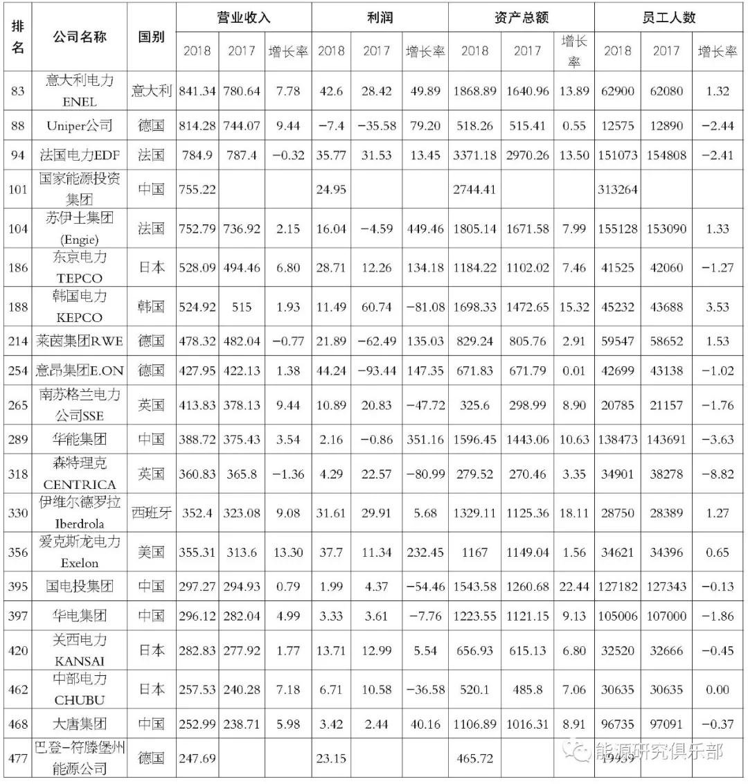 注:所有數(shù)據(jù)來源均以各公司上報《財富》數(shù)據(jù)為準(zhǔn),并由《財富》統(tǒng)一設(shè)置匯率口徑進行統(tǒng)計。國家能源投資集團(新組建)和巴登-符滕堡州能源公司(再入榜)數(shù)據(jù)僅有2018年