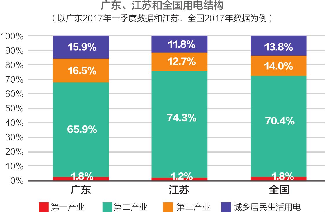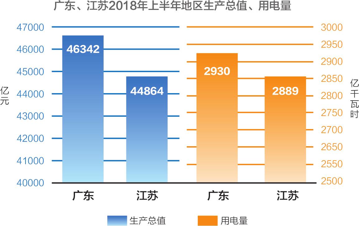 廣東、江蘇GDP、用電量合計(jì)占全國總量的21%、18.7%