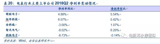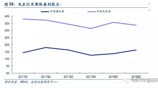 從整從體盈利水平來(lái)看,電表行業(yè)的毛利率水平2017年四季度開(kāi)始回升基本保持在35%左右,凈利率方面則在持續(xù)提升。