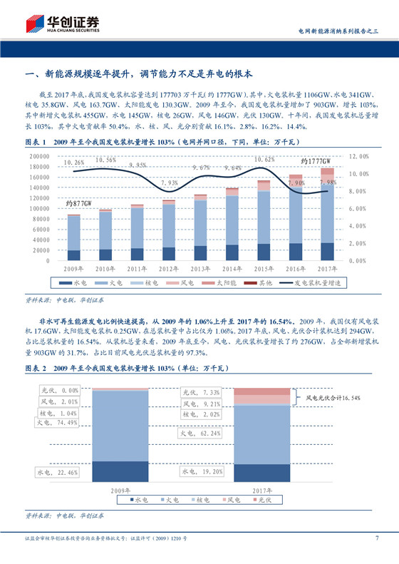新能源發(fā)電對電網(wǎng)沖擊愈發(fā)強烈。2017年底,我國總發(fā)電裝機容量達到1777GW,其中新能源發(fā)電裝機量比例已達到16 54%。