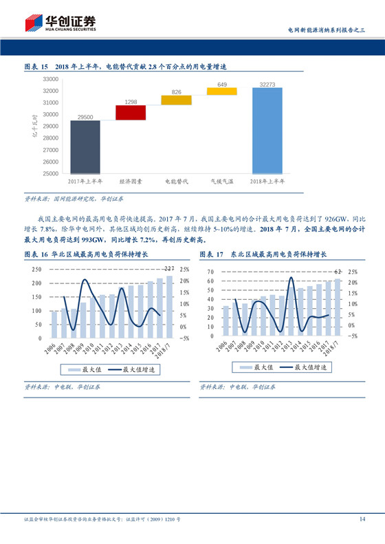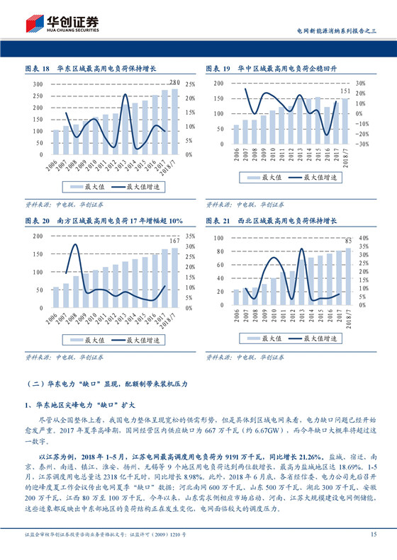 電力系統(tǒng)結(jié)構(gòu)日益復(fù)雜,調(diào)節(jié)能力亟待提升。2018年上半年,全社會用電量同比增長9.8%,2017、2018年7月份最高電網(wǎng)負(fù)荷均保持了7%以上的同比增速。電網(wǎng)規(guī)模日益擴大,同時新能源發(fā)電裝機量繼續(xù)保持高位。華東區(qū)域最高電網(wǎng)負(fù)荷在可調(diào)度的非新能源發(fā)電裝機中的比例已經(jīng)達到90%,電網(wǎng)調(diào)節(jié)壓力非常巨大。西北、東北區(qū)域2017年底的新能源滲透率分別達到93%、100%,已達到丹麥的水平。這些都對我國電網(wǎng)調(diào)節(jié)能力提出了巨大挑戰(zhàn)。