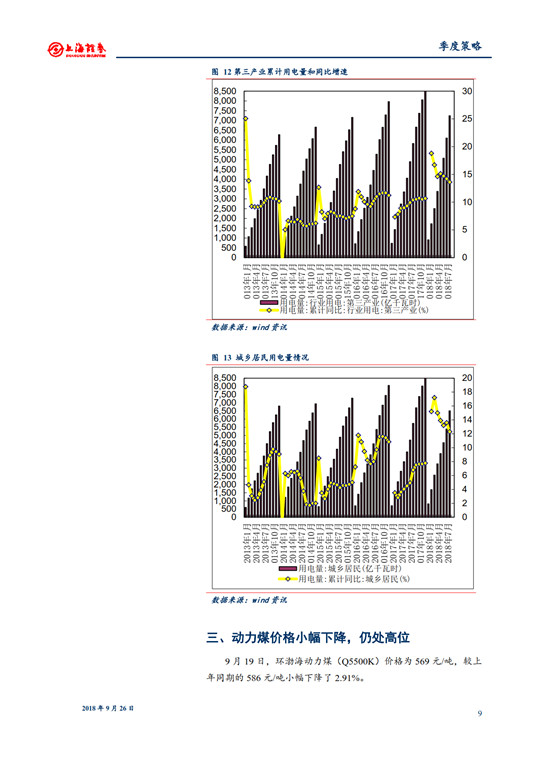 可以看出,電力供給與需求關(guān)系有所改善,利用小時(shí)增加??申P(guān)注電力需求增長(zhǎng)帶來(lái)的電力設(shè)備利用率提升情況。目前,煤炭雖處于需求淡季,煤炭?jī)r(jià)格較上年同期小幅下降,但仍處于相對(duì)高位。