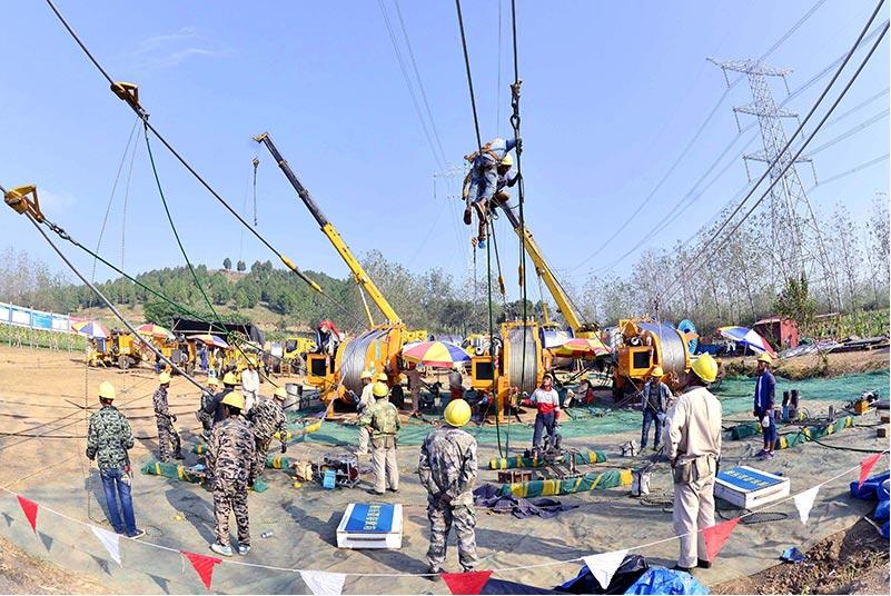 9月11日上午,江蘇省送變電公司人員在該省盱眙縣天泉湖境內(nèi)施放±800千伏晉北-江蘇直流特高壓直流工程盱眙段導(dǎo)線,加快推進(jìn)國(guó)家大氣污染防治重點(diǎn)工程建設(shè)進(jìn)度。