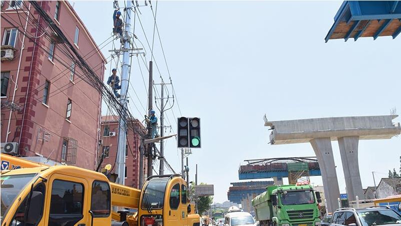 當(dāng)天上午,施工人員在停電前做好各項準(zhǔn)備工作,在老舊線旁新立電桿、新放線路電纜,并及時拆除老舊設(shè)備。停電施工期間,市南供電公司還對沿線各路口的交通信號燈提供了臨時應(yīng)急供電,確保交通主干道虹梅南路道路通暢。