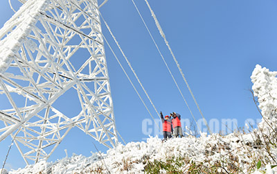 國(guó)網(wǎng)重慶長(zhǎng)壽供電公司輸電運(yùn)檢室和黔江運(yùn)維站的20名員工組成了巡線小分隊(duì),奔赴彭水縣和酉陽縣分別對(duì)220千伏張武南線、黔酉東西線進(jìn)行特殊巡視,重點(diǎn)觀測(cè)風(fēng)向、風(fēng)速、氣溫、濕度以及覆冰厚度和形態(tài),分析預(yù)測(cè)覆冰發(fā)展趨勢(shì);同時(shí),充分利用無人機(jī)、望遠(yuǎn)鏡等方式全方位觀測(cè)覆冰程度,保障線路安全運(yùn)行。